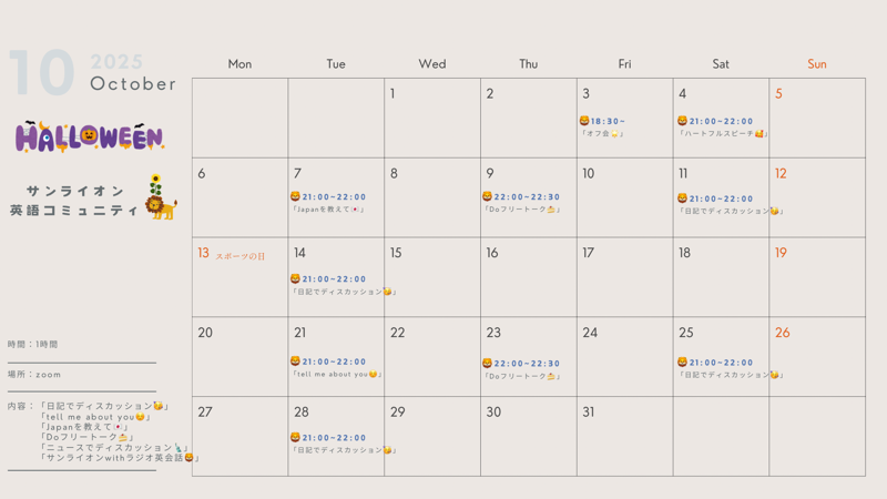 オンライン英語コミュニティ(サンライオン+🦁)のスケジュールを更新しました。